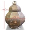 living space with the captivating charm of this piece.1. Exceptional Craftsmanship: This metal lantern is a testament to the skill and artistry of our craftsmen. Each piece is meticulously handcrafted to perfection, ensuring that you receive a product of the highest quality.2. Etched Elegance: The intricate etched detailing on this lantern is a visual delight. It showcases a level of craftsmanship that’s rare to find.3. Versatile Decor: Whether you want to create a cozy corner in your living room, set the mood for a romantic dinner, or illuminate your outdoor gatherings, this lantern is up to the task.4. Durability and Stability: Crafted from premium metal, this lantern is built to last. It’s sturdy and stable, ensuring that your candles stay secure.5. Thoughtful Gift: Searching for a thoughtful and elegant gift? Look no further. This metal piece is an ideal choice for housewarmings, weddings, birthdays, or any special occasion.6. Easy Maintenance: Maintaining the pristine look of this product is effortless. Simply wipe it down with a soft, damp cloth to remove dust or smudges. It’s designed to retain its luster and charm over time.
